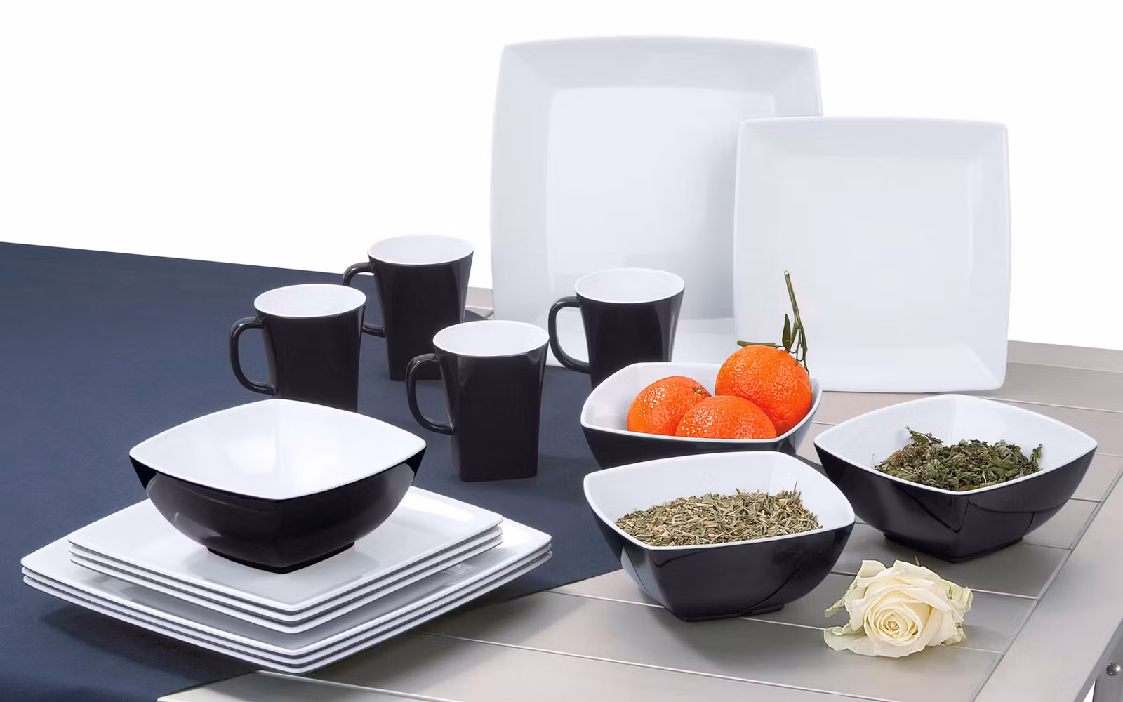Høykvalitets bearbeiding og lettstelt, matsikker og temperaturbestandig opp til +45°C Tåler oppvaskmaskin og bruddsikker lav vekt Ikke egnet for mikrobølgeovn