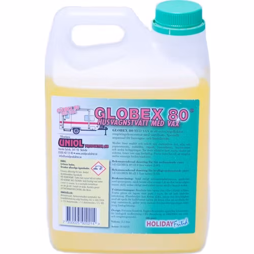 Globex 80 med voks sammen med en god vaskekost gir skinnende ren bobil eller campingvogn i solenEt produkt vi varmt anbefaler, som gir ren og pen bil og vogn sa
