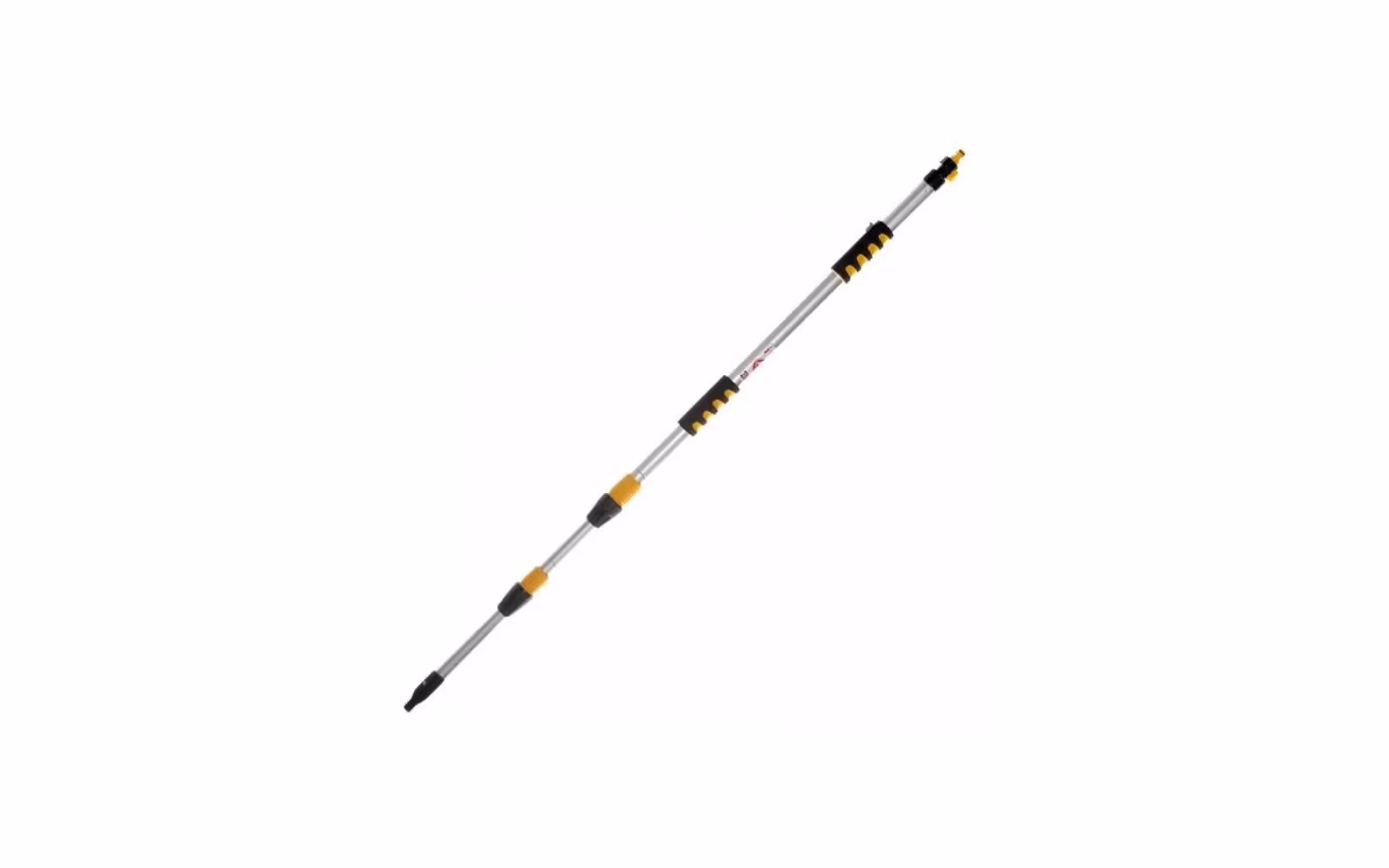 Tredelt aluminiumsstang med vanngjennomgang. hurtigkobling. Kan slås på/av vann. Teleskopiske holdeforlengere. Lengde justerbar fra 115 - 250 cm. Ideell for re
